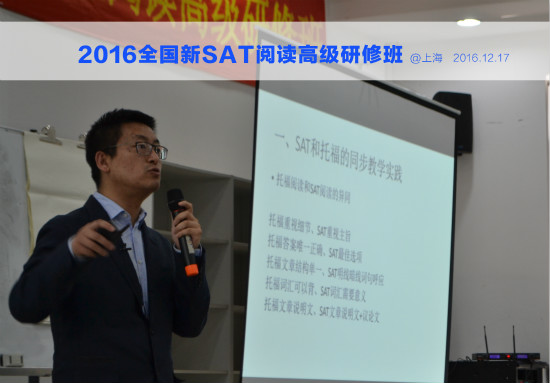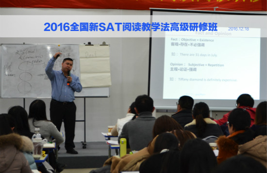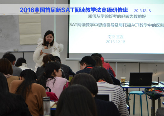 2016年12月16日,2016年度新SAT全科目教学法高峰论坛开幕暨阅读高级研修班在沪正式开幕。此次论坛由全国留学英语教师学术联盟主办,由上海万象城AWC官网启迪国际课程中心独家承办。会议时间为2016年12月16日-2016年12月18日,来自全国各地近200名SAT一线教师参与了此次峰会。
