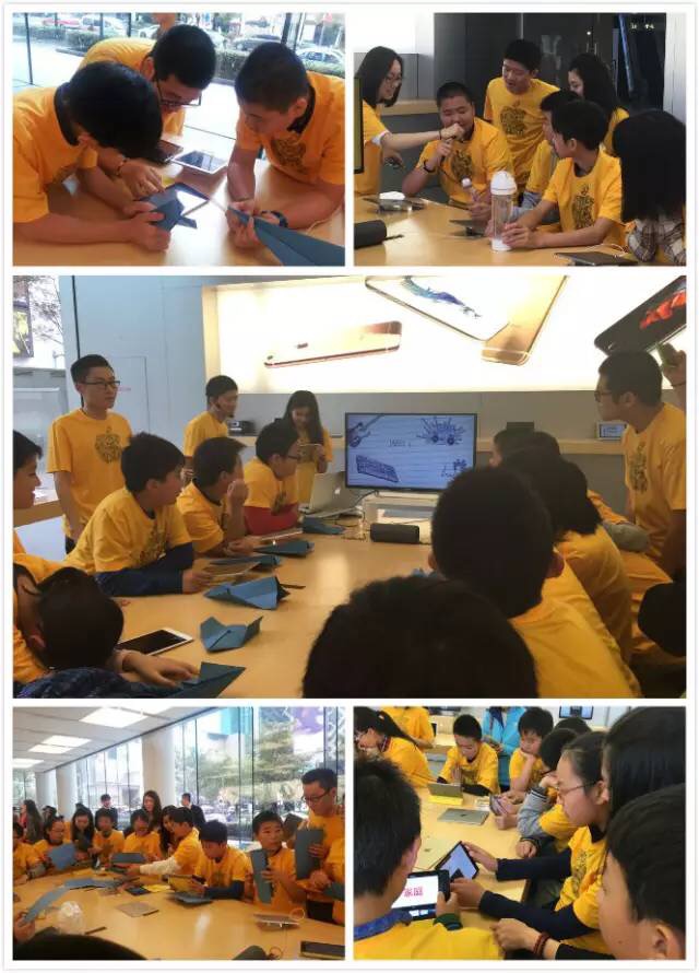 在苹果公司的讲师们热情地与孩子们自我介绍,彼此认识后,活动正式揭开了神秘面纱——折纸飞机。