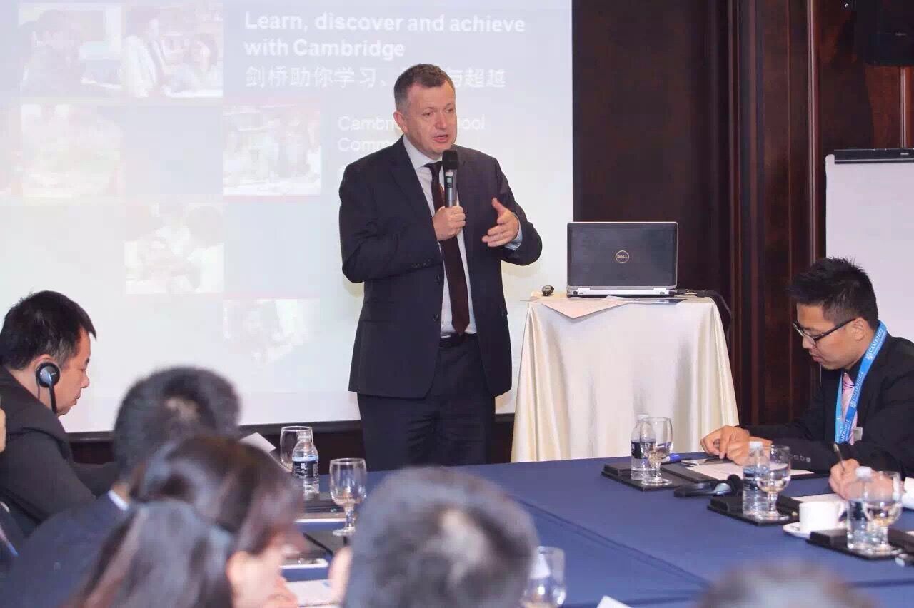 剑桥大学考试局的首席执行官 Simon Lebus先生,剑桥大学海外考试委员会首席执行官 Michael O'Sullivan先生,剑桥大学海外考试委员会国际业务总监Janet Morries女士,剑桥大学海外考试委员会东北亚区总裁丁伟先生以及华东地区的剑桥国际高中的校长们出席了此次会议。