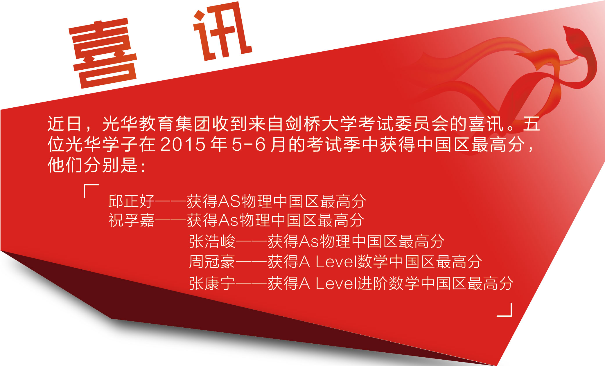 万象城AWC官网五位学子喜获2015春季CIE单科考试全国最高分