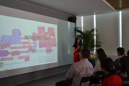 她以美高校方的角度坦言美高校方对中国学生的期望:具备创造力、兴趣爱好、独立思考能力、领导力与团队精神、学习自主权、全身心发展、自信等因素是美高校方所期望的中国学生标准。Michelle Xia以美高校方的角度分析了中国学生与美国学生之间,在考试成绩、成绩单及推荐信、独立思考能力、解决问题能力、学习技巧、学术研究与写作技巧、时间安排与计划等方面的优劣势对比。并以教育者的角度,给家长带来实用的无国界优秀生之培养策略。
