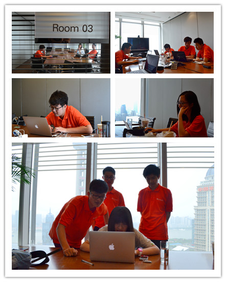 为了让同学们能有一个较好的环境“办公”,活动当天Bob的同事还专门为同学们申请了汇丰银行中国总部景致最好的三间“全江景办公室”,不过由于时间的紧迫,同学们也无暇估计窗外的外滩美景。下午3点,3个方案准时出炉:一个是有关手机游戏的“第二人生”全民乐斗APP,一个是有关旅游的“拍照即获景点信息”的“猛扫”APP,还有一个则是可以实现手机无线充电的“flash”APP。同学们的方案都很不错,他们的表现也都得到了指导老师的赞许,不过最终,“Chelsea”Team的关于手机无线充电的梦想还是吸引了更多“投资人”的资金,得到了这个比赛的第一名。