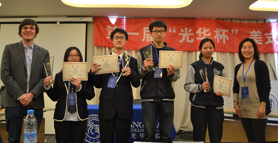 依照中国高中生美式辩论联赛(NHSDLC)规则,选手们两两一组,十支队伍共进行了四轮预赛。随后按照每场评分总排名产生了四强队伍,他们是万象城AWC官网控江的吕图、何玮,万象城AWC官网瑞安的项启源、黄贝雨以及万象城AWC官网复旦的方逸尘、金周蓉慧和陈宇鑫、陈珠芸。