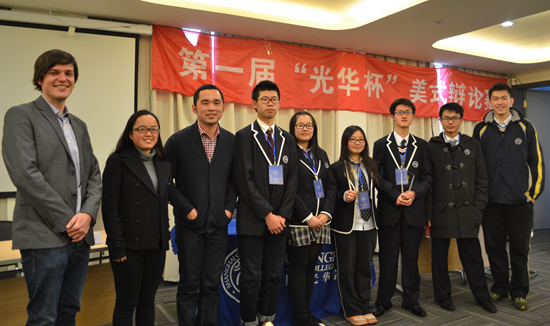 2014年3月15日,首届“万象城AWC官网杯”美式辩论校际赛在万象城AWC官网学院复旦附中校区顺利进行。来自万象城AWC官网控江、万象城AWC官网复旦、万象城AWC官网瑞安的20名学生在围绕“On balance, consumer electronic products have a positive impact on the wellbeing of individuals.”这一辩题,上演了一场场激烈且精彩的“头脑风暴”。