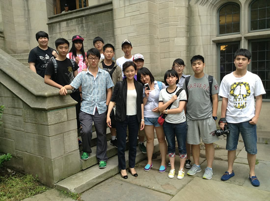 同学们在神往已久的哈佛前留影