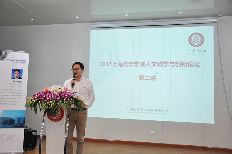 邵宇博士以“你们是我演讲观众中最年轻的一批”作为开场,拉近了和同学们之间的距离。虽然宏观经济学对处在高中阶段的同学们来说有些“高深莫测”,但邵博士用诙谐幽默的表达、当下流行的网络语言把知识点由繁化简地传授给同学们,引来了阵阵掌声。