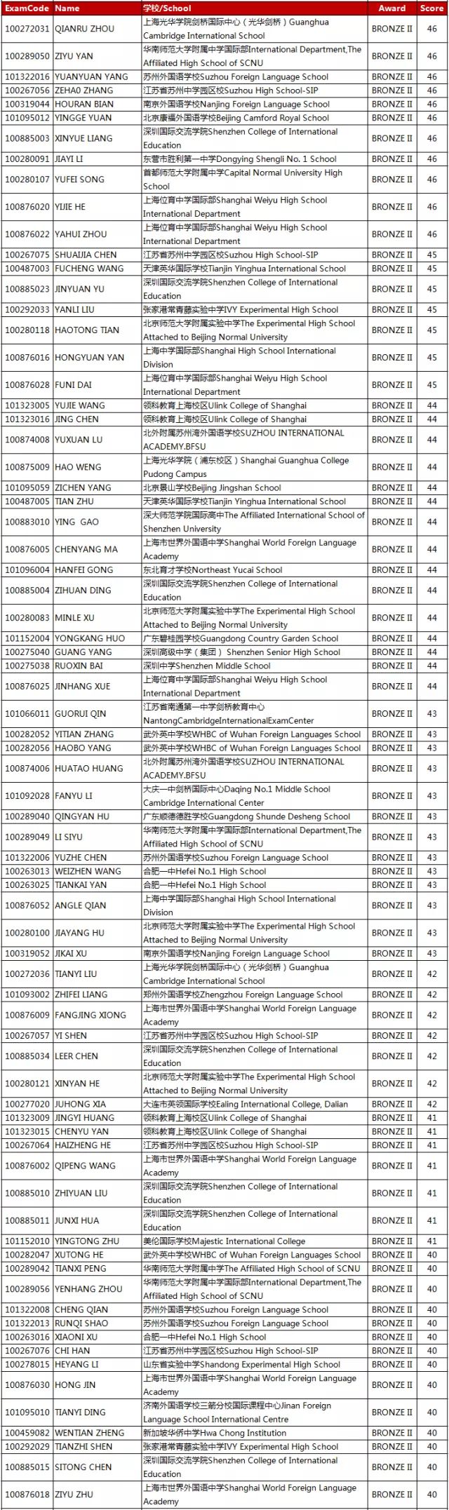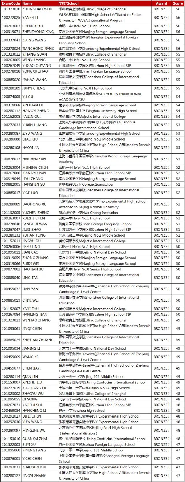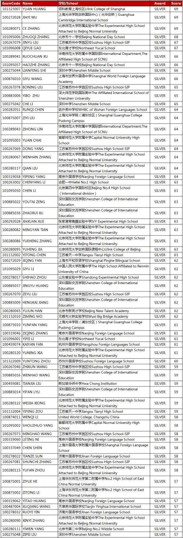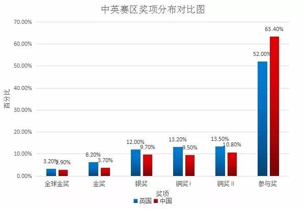 今年中国赛区有来自123所全国重点中学、国际学校推荐共计742名同学参赛。以下是中英赛区整体的获奖情况: