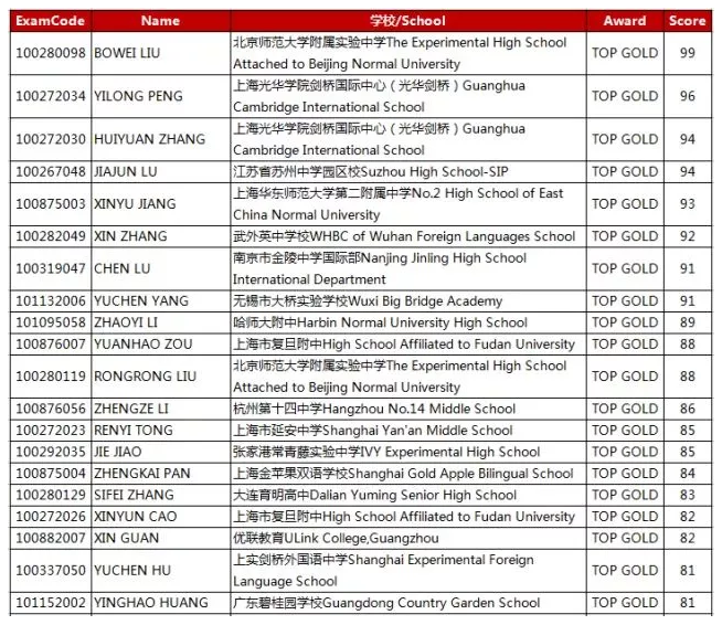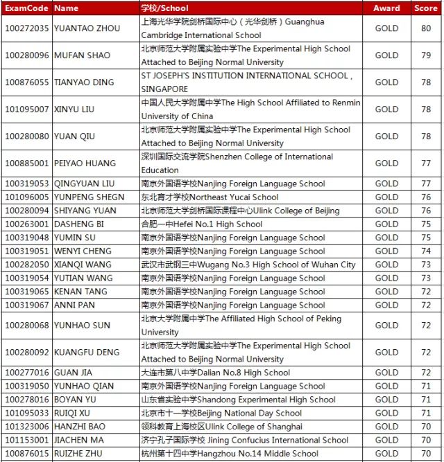 以80分的成绩,为中国区成绩最好的金奖获得者。