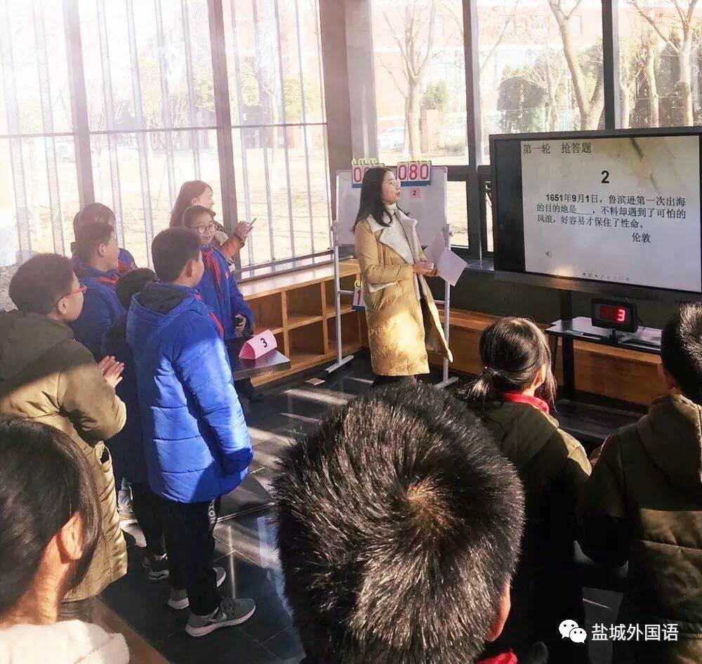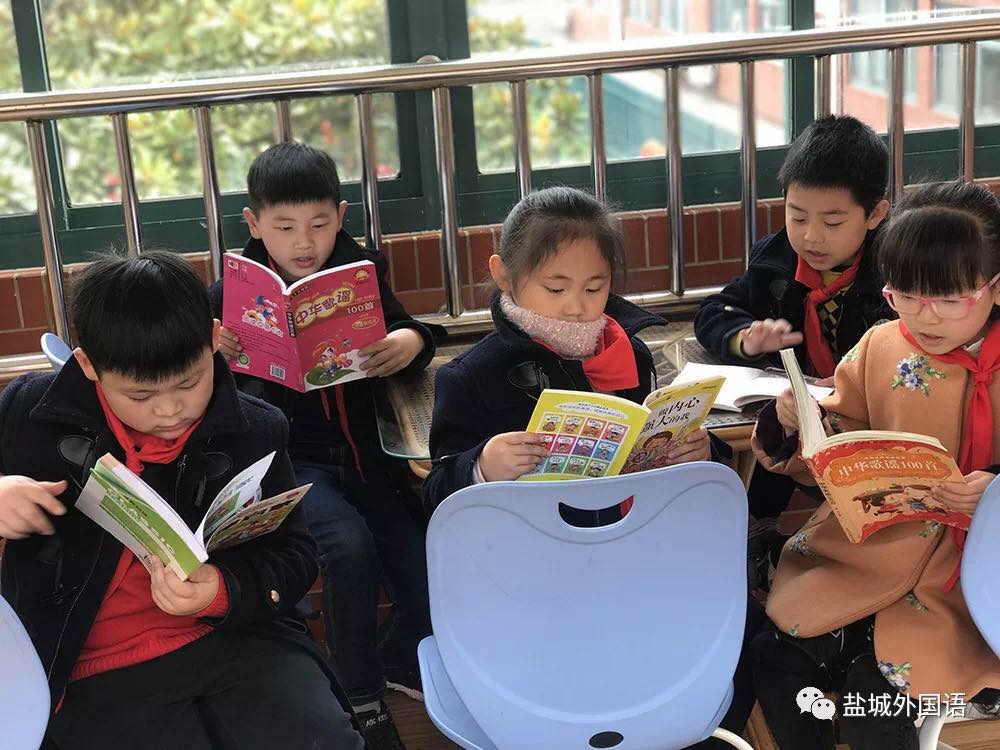 盐城外国语学校教研处3月组织了“阅读达人打卡活动”,以此激发学生阅读兴趣。图为中高年级在咖啡吧进行名著交流活动